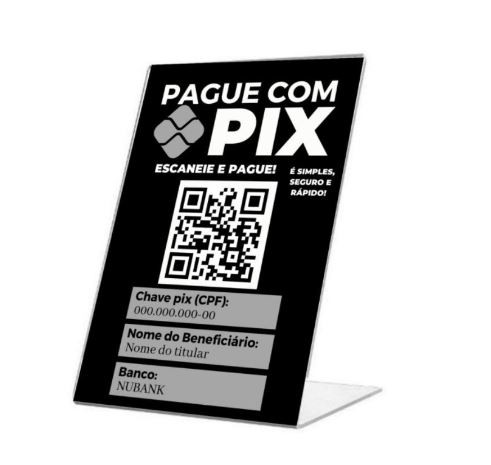 Facilite suas vendas através desse lindo Display que vai com o QR Code da sua chave PIX e com os dados para pagamento no modo manual.